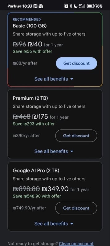 62% הנחה על כל תוכניות גוגל ONE לרגל השנה החדשה