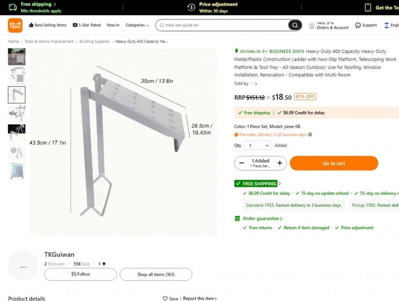 * יש לי מדף מתכת שנראה דומה אבל נרכש באמזון ב 2022 במחיר כמעט כפול. זה שימושי להנחת כלים, חומר, צבע וכו'. אצלי עובד טוב עם סולמות מפרקים / מפרקי טלסקופי.