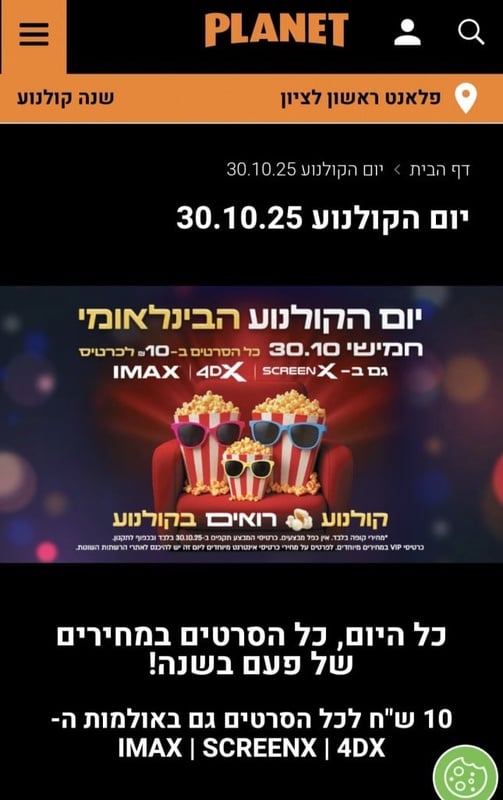 יום הקולנוע הבינלאומי 30.10.25 סרטים ב10 שח בקופות