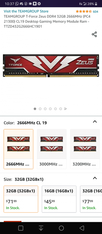 TEAMGROUP T-Force Zeus DDR4 32GB 2666MHz (PC4 21300) CL19 Desktop Gaming Memory Module Ram - TTZD432G2666HC1901