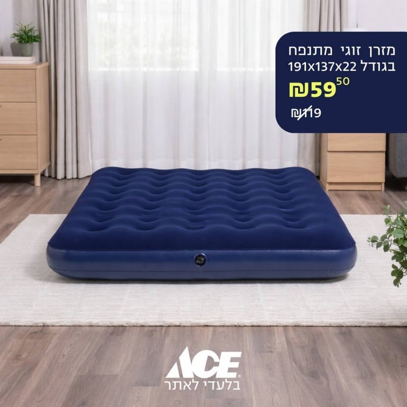 מזרן קטיפתי זוגי מתנפח בגודל 191x137x22
