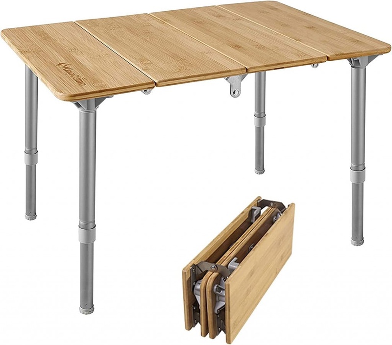 KingCamp Bamboo Folding Table Camping Table with Adjustable Height 4-Folds Compact Small Lightweight Portable Picnic Camp Table for Outdoor Backpacking Beach RV Travel Tailgating Barbecue, 1-2 People