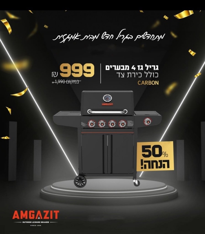 גריל גז 4 מבערים + כירת צד AMGAZIT Carbon 50,000 BTU