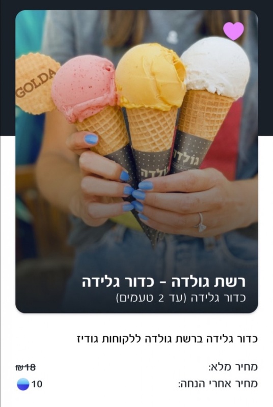 כדור גלידה מתנה בגולדה תמורת 10 גודיז