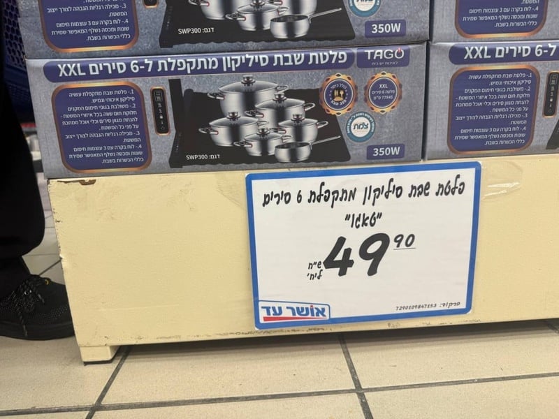 פלטת שבת מתקפלת 6 סירים 350W אושר עד תל אביב