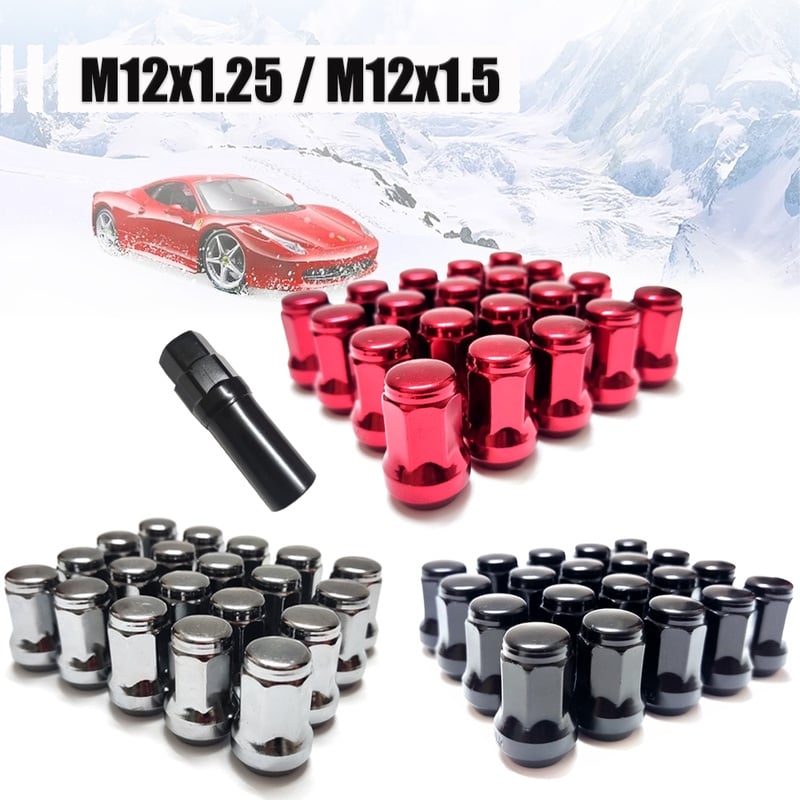 20pcs / 16pcs Black Wheel Nuts Closed End Bulge Acorn Lug Nuts m12x1.25,m12x1.5,height 31mm Wheel Nuts