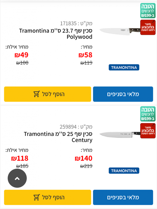 קספ: הנחות גדולות על מגוון סכיני שף של טרמונטינה