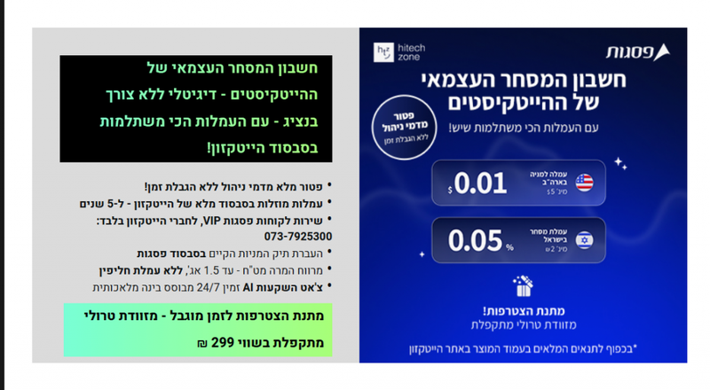 חשבון מסחר ללא דמי ניהול (פסגות דרך הייטקזון)