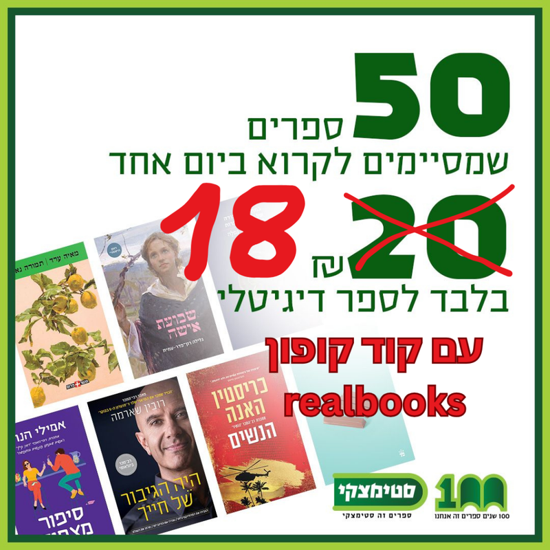 ספר דיגיטלי ב 18 ש"ח (באתר זה 20 שקלים, קוד קופון realbooks נותן עוד 10% הנחה) מתוך מגוון של 50 ספרים.
