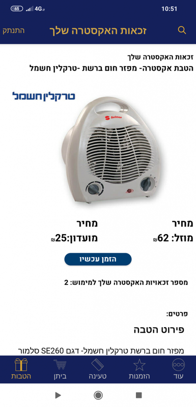 שימו לב להטבה האקסטרה במועדון "שלך" מפזר חום במחיר לא רגיל ב25 שקל בלבד