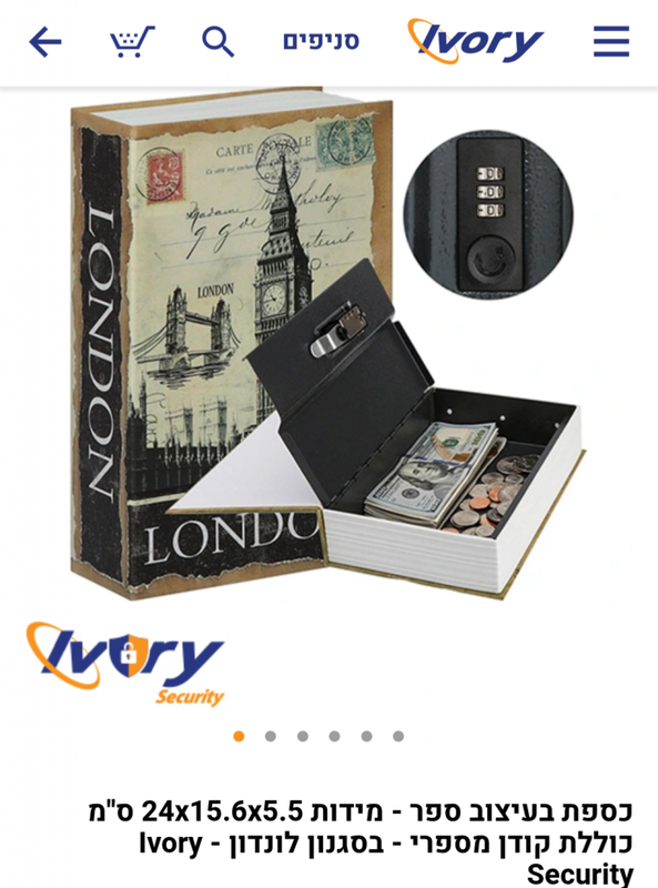 יש עוד דגמי ספרים באותו מחיר באתר אייבורי - חפשו "כספת בצורת ספר".