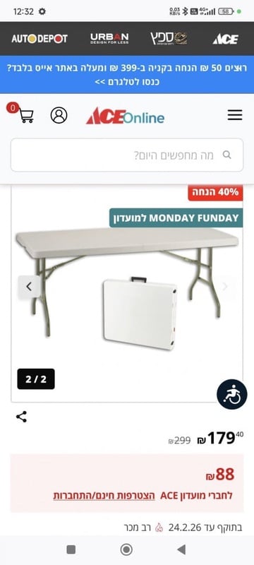 'רק היום': שולחן 180*70 גובה 74