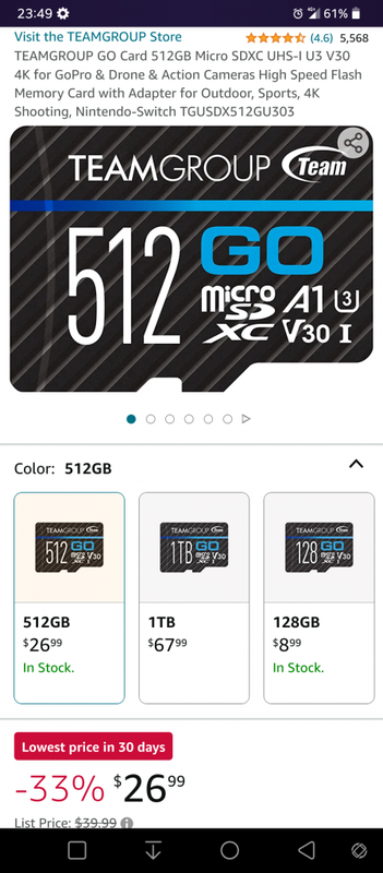 TEAMGROUP GO Card 512GB Micro SDXC UHS-I U3 V30 4K for GoPro & Drone & Action Cameras High Speed Flash Memory Card with Adapter TGUSDX512GU303