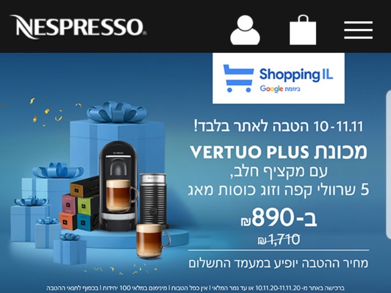 דיל פצצה מכונת נספרסו +מקציף+5 שרוולים+2 ספלים ב890 שח