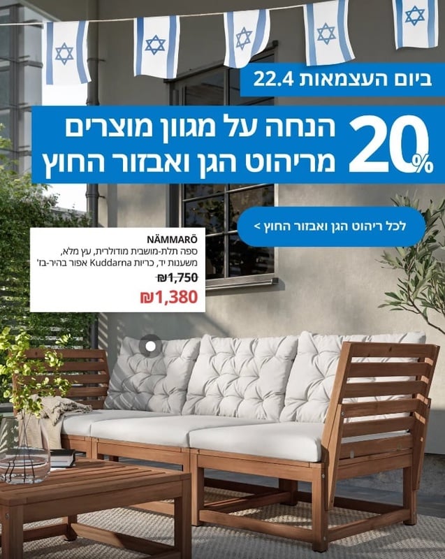 20% הנחה על מגוון מוצרים מריהוט הגן ואבזור החוץ ביום העצמאות באיקאה