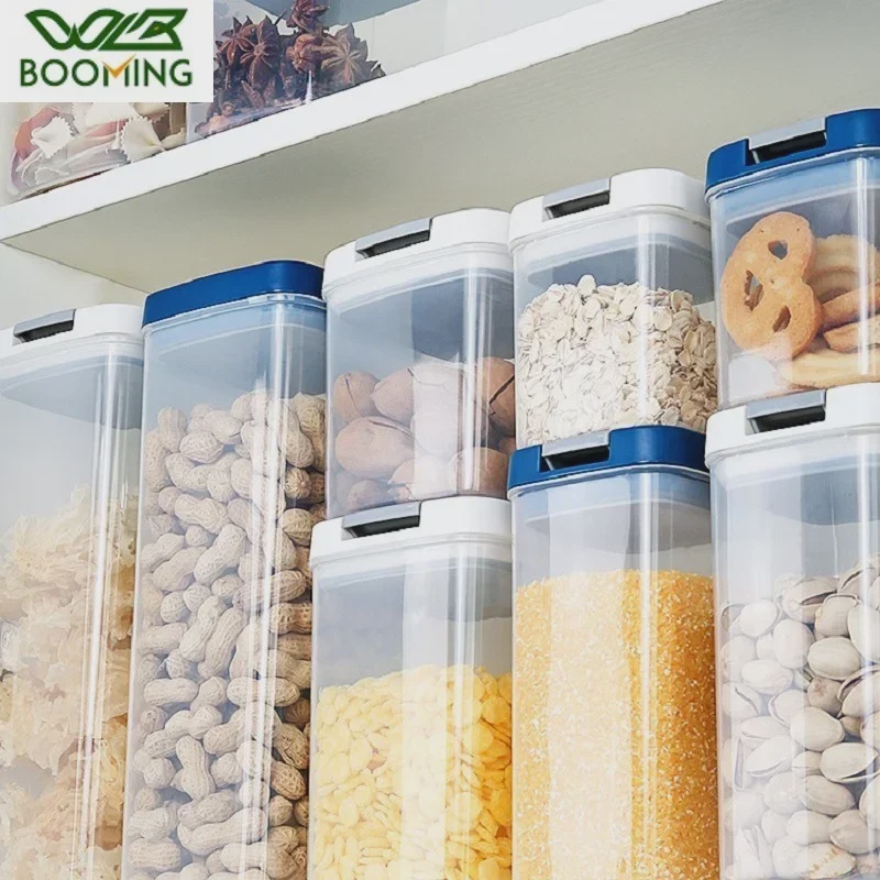 קופסאות אחסון שקופות למטבח מפלסטיק אטום בגדלים שונים, לשמירה על טריות המזון. טובות לדגני בוקר, עוגיות ועוד מלא דברים.