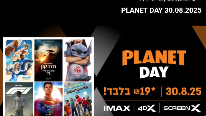 יס פלנט סרטים 30.08.2025: IMAX | SCREENX | 4DX במחיר מיוחד, 19 ש"ח בקופה