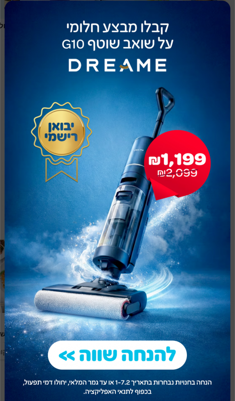 @BenDanielPere Feb 01, 2026 זה כמו שהם מכרו את הסוויץ' 2 עם משחק ב 1800 ש"ח. זה מגניב אם פעם בחודש ככה הם יבוא איזה מוצר פצצתי כזה במחיר שובר שוק. לא שאני אי פעם אתקרב לשואבים שוטפים האלה שוב אשתי מזניחה את הנקיון שלהם (למרות שרק צריך ללחוץ על ניקוי עצמי ולרוקן) ואז הם מסריחים ואז היא לא משתמשת בהם יותר לעולם - ממש זריקה של כסף לפח במקרה שלי. ועוד קניתי 2 (טינקו S7 Steam שבהתחלה היא עוד עפה עליו כי בזכות הקיטור הוא מייבש ממש מהר את הרצפה ואיזה Shark שאחיה המליץ עליו).
