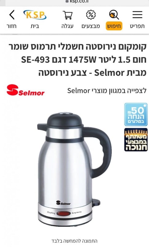 קומקום נירוסטה חשמלי תרמוס שומר חום 1.5 ליטר ב99 במקום 299 2025-12-22 20:12:30 שומר חום לכ4 שעות @EliyahuElkoby70 29 נקודות @EliyahuElkoby70 /3" עוקבים לפרטים נוספים פרטים נוספים ב- KSP תגובות @dangmoo Dec 23, 2025 @החיילהאוסטרלי איזה מדבקה זה חברה מקיבוץ שומרת קיימים איזה 50 שנה. נכון שהיום הם מייצרים פחות ויש חלקים שמייבאים אבל המוצרים שלהם שווים ולמותג יש ערך. זה לא איזה זבל עם מדבקה. יש לי כמה מוצרים שלהם כולל מפזר חום שסטטיסטית היה צריך למות מזמן אבל איכשהו מחזיק כבר 8 שנים. @כרמלהגלבוע Dec 23, 2025 @|חייםכהן זה כי לא השתמשת בתרמוסים של Zojirushi, סטנלי, קלין קנטין, יטי, Miir או הידרו פלאסק. כולם טובים יותר מהתוצרת של תרמוס בקטגוריות השונות.בכללי, ל-Zojirushi היפנית יש את התרמוסים הכי טובים (כשסטנלי טיפה אחריה). @חייםכהן Dec 23, 2025 @|כרמלהגלבוע דווקא לי חברת תרמוס המים החזיקו יום וחצי. שאר החברות בקושי 3 שעות @Eliranl Dec 23, 2025 @|Jack_Bristow במחיר הזה לא תעדיף מיחם לשבת? אלא אם כן אתה צריך כמות למעט אנשים, או קומקום שומר חום לבית מלון וכדו' @כרמלהגלבוע Dec 23, 2025 @|חייםכהן ב-ו-ל-ש-י-ט @חייםכהן Dec 23, 2025 אם תרמוס אז רק של חברת תרמוס, כל השאר בבלאט @החיילהאוסטרלי Dec 23, 2025 סלמור זאת מדבקה מה מצוין בהםרואים כמה מים אתה שם? אני מנחש שלא ואז קצת בעייתי @Jack_Bristow Dec 22, 2025 לכן לשבת צריך משהו כמו ששלחתי @נתנאל Dec 22, 2025 לשבת התרמוסים האלו טובים צריך להשתדל לא לפתוח את המכסה לגמרי אלא לhttps://www.amazon.com/Thermos-Stainless-Ounce-Beverage-Bottle/dp/B08JX32JHP/ref=sr_1_10?crid=2LRSI8HID3PLO&dib=eyJ2IjoiMSJ9.aFRKoofcLVfj_vXYfa48GMpaYZzvx8D-FyKHsfI1IYjH7xdn-G8WP2HdbWRmUibdVZIxMSl9LeWEnfJQDwg_tM91vkAS1qV6vhdGsDxa-gEmqw6rW04j2zAtCbs5WBKo_THfFuZhe-klGwlLTNXXU_KLltlImrnLXUqpxsRRf5ouyDutcceKzNLNURcMYL2Uo0I8aDPAsp77VUV3NAwJGgphrpEPSCeqRq5_LjtHE62hXvqcdIzHHakuZCBesqZ1Su3skdB5ve8mTVCBsQJYLSKTPHfqrt9fD8mBAYfHaJg.Ozu51ssx0dKJWwT9eXIMD1zb3Zky7LAhIKJjsMDYXKM&dib_tag=se&keywords=thermos&qid=1766428412&sprefix=thermo,aps,226&sr=8-10&th=1מזוג מהפייה של התרמוס @dangmoo Dec 22, 2025 @Jack_Bristow מה שפה שומר רק ל4 שעות לא יספיק לשבת. אבל נראה אחלה מבצע סלמור חברה מצוינת @נתנאל Dec 22, 2025 כנראה זה חימום תרתי משמע לחתימה של סמוטריץ' מחר על העלאת רף הפטור:flushed: @Jack_Bristow Dec 22, 2025 לשבת עדיף את זה גם שעולה כפול https://ksp.co.il/mob/item/377423