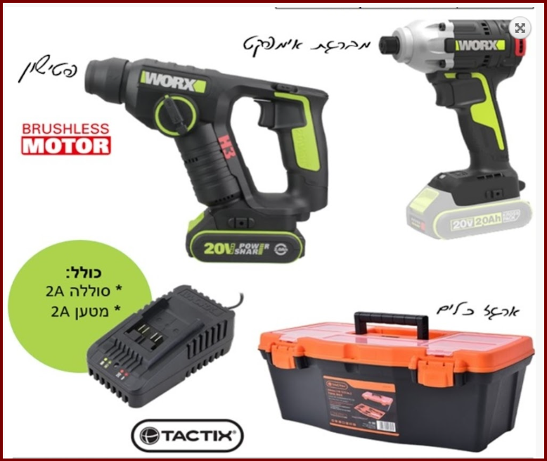 סט WORX מברגה + מיני פטישון 20V