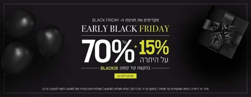 3. בכל הסניפים יש עכשיו מבצע של 70% הנחה, מה שאומר שקונים ב-500 ש"ח ומשלמים רק 150 ש"ח.