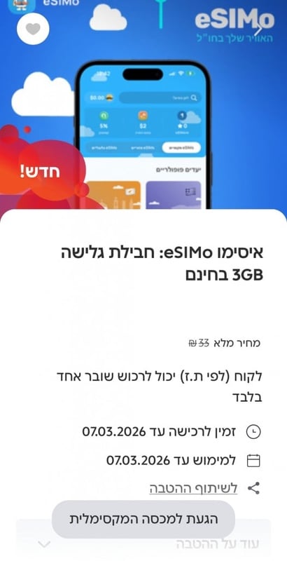 רשום שהתוקף הוא עד ה 7.3.26 ויש מצב (טרם בדקתי) שאפשר גם לרכוש באמצעות השובר חבילה שתנוצל אחרי התאריך הזה, ושהתאריך הזה מתייחס רק לתאריך הרכישה ולא המימוש.