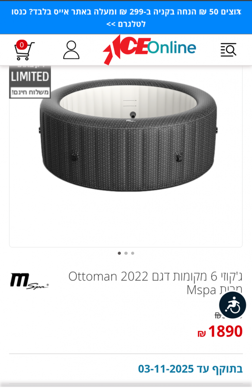 דיל על ג'קוזי עם שש מקומות באייס במשלוח חינם