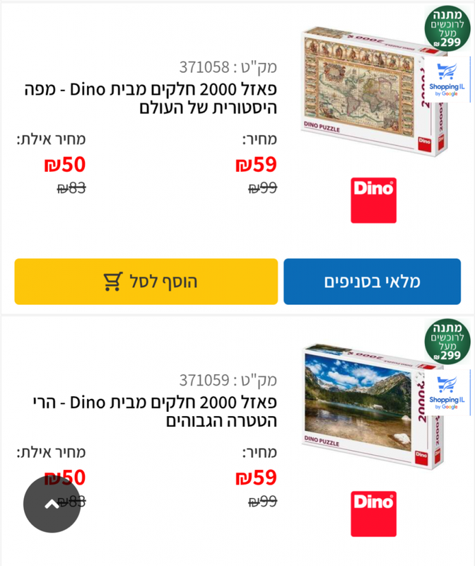 פאזלים 2,000 ו-3,000 חלקים ב-59 ו-89 ש', בהתאמה