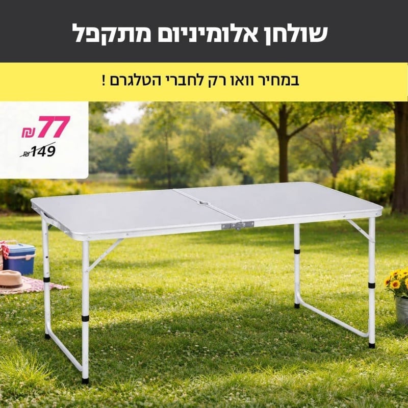 שולחן אלומיניום מתקפל הכולל פתח לשמשיה.