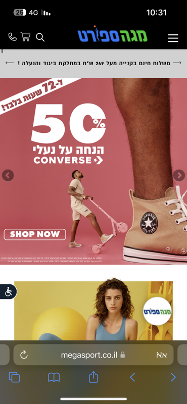 50% אחוז הנחה על נעלי converse אפשר גם לשלם עם כרטיס ״חבר״ פיזית בסניף למי שיש וה זה נותן עוד הנחה של 30% קניתי שני זוגות ב245 שקלים.