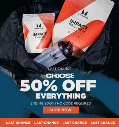 Myprotein ב-50% הנחה וללא תשלום מיסים עד 150 דולר. משלוח חינם לארץ בהזמנה מעל 320 שקל.