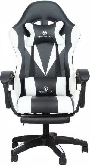 כיסא גיימינג כולל הדום לרגליים וכרית עיסוי חשמלית דגם 7001 מבית Tesla - צבע לבן