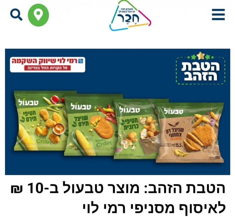 לחברי מועדון חבר, הטבת הזהב: מוצר טבעול ב-10 ₪ לאיסוף מסניפי רמי לוי