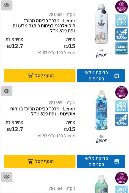 @כרמלהגלבוע Apr 23, 2026 @|Natany נא עיין בפרייסז ותחזור עם מסקנות (אמ;לק: נכון לנקודת הזמן הזאת בה אנחנו נמצאים, כלומר בהווה, אתה לגמרי טועה - 14 במחסני השוק, 15.90 בוויקטורי, 13.90 בחצי חינם, 15 ברמי לוי באינטרנט וכו').היחידים שמוכרים באותו מחיר או ביותר זול: שפע ברכת השם (9), שוק העיר (9.90).
