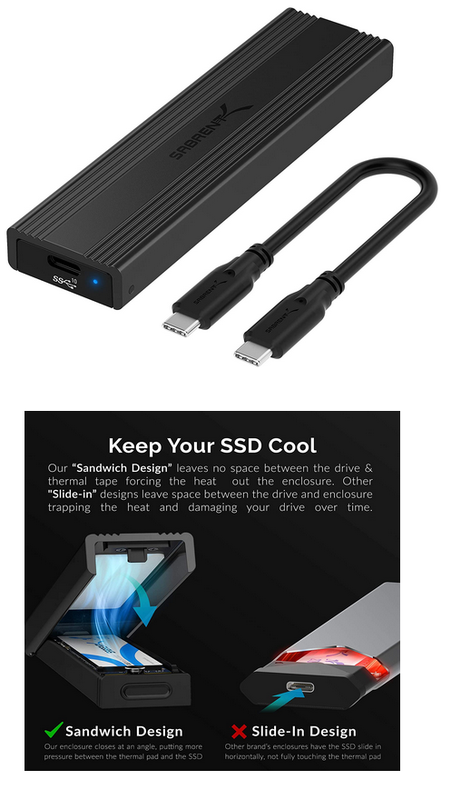 SABRENT USB 3.2 Type-C Tool-Free Enclosure for M.2 PCIe NVMe and SATA SSDs (EC-SNVE)