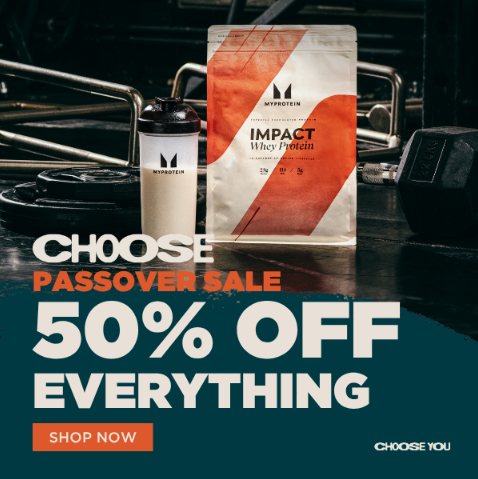 Myprotein 50%+10% הנחה ללא תשלום מיסים עד 130 דולר.