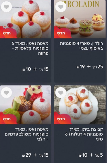 הטבה בלעדית באפליקציה - רולדין-מארז 4 סופגניות באיסוף עצמי ברשת רולדין - 15 ש"ח