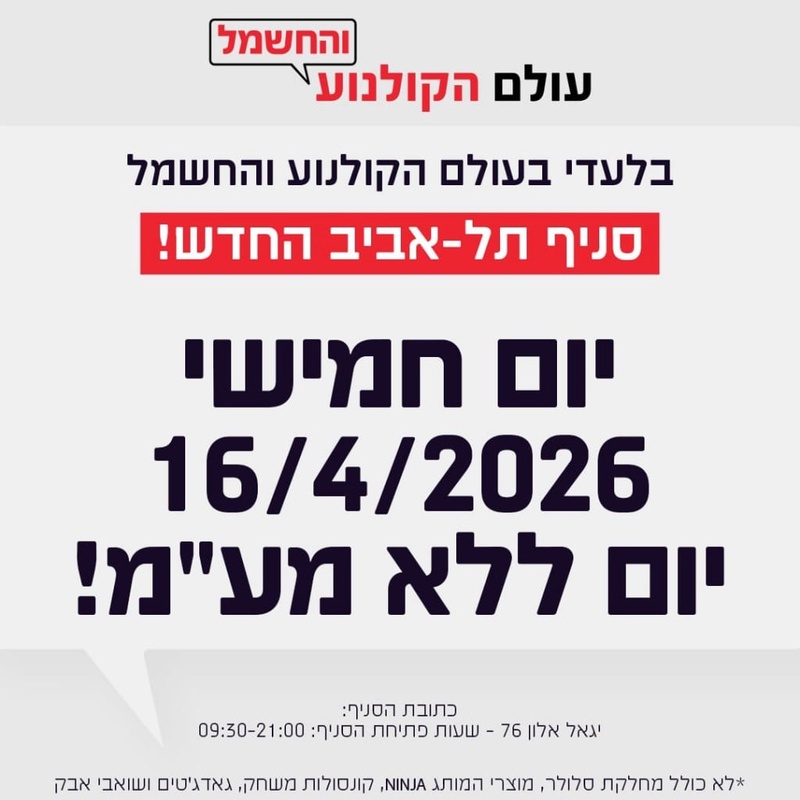 עולם הקולנוע והחשמל יום ללא מע"מ סניף תל אביב