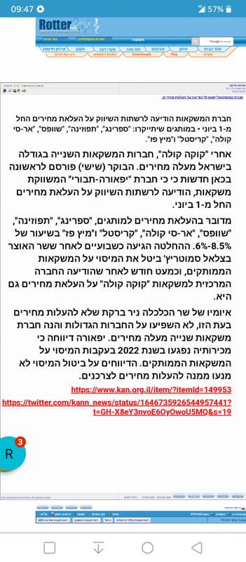 • במותגים שיתייקרו: "ספרינג", "תפוזינה", "שוופס", "אר-סי קולה", "קריסטל" ו"מיץ פז".