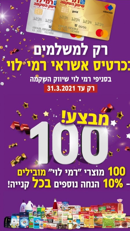 100 מוצרים שונים של רמי לוי בהנחה של 10% בתשלום בכרטיס ישראכרט של רמי לוי.