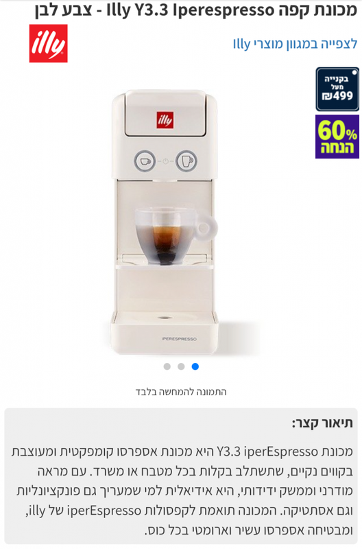 פועלת עם קפסולות Illy בלבד - לא נספרסו.